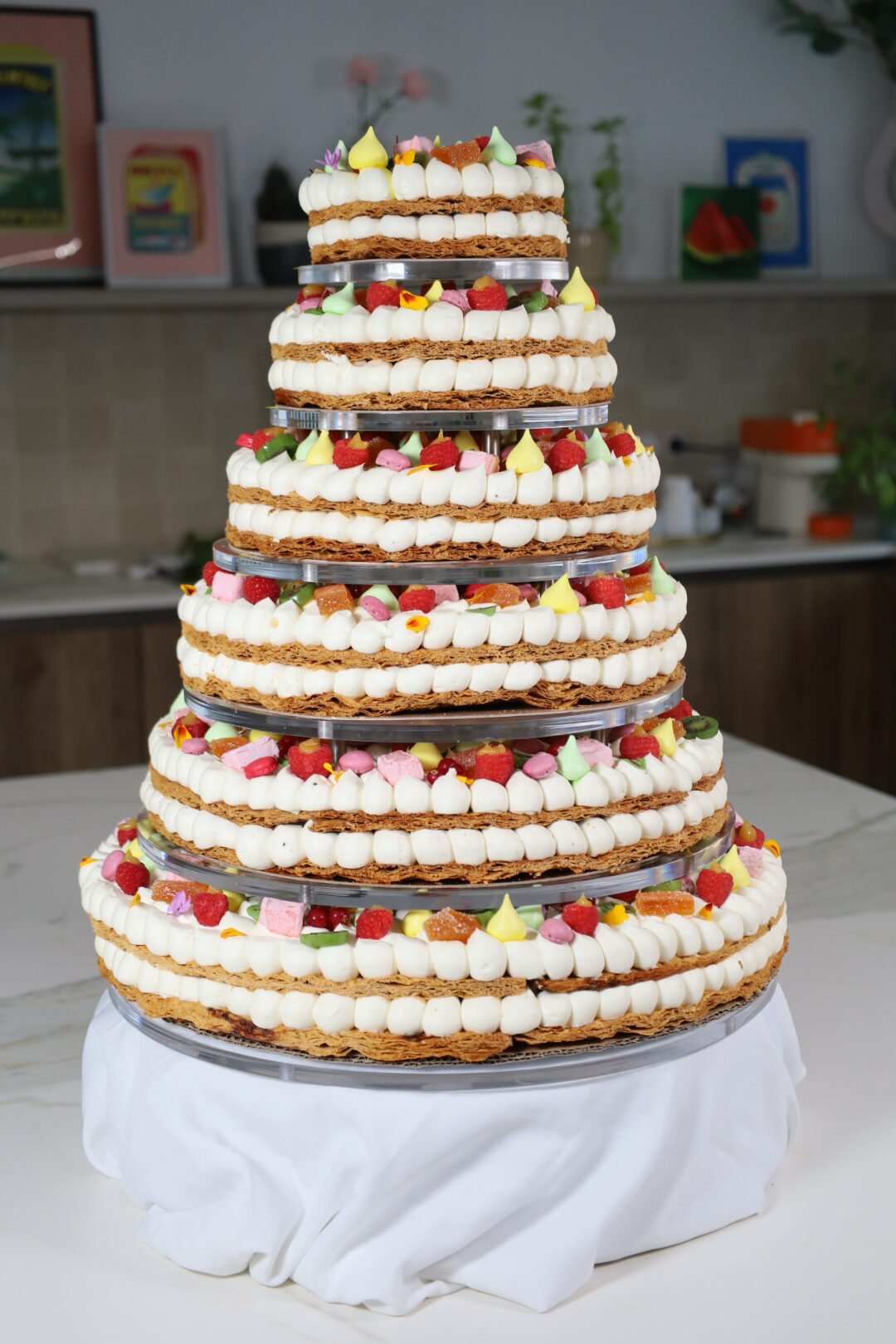Chez Une Part de Gâteau, nous concevons des gâteaux de mariage personnalisés et des pièces montées uniques, à l’image de votre union. Que vous souhaitiez un style classique, élégant, moderne ou thématique, nous mettons notre savoir-faire au service de votre rêve sucré.